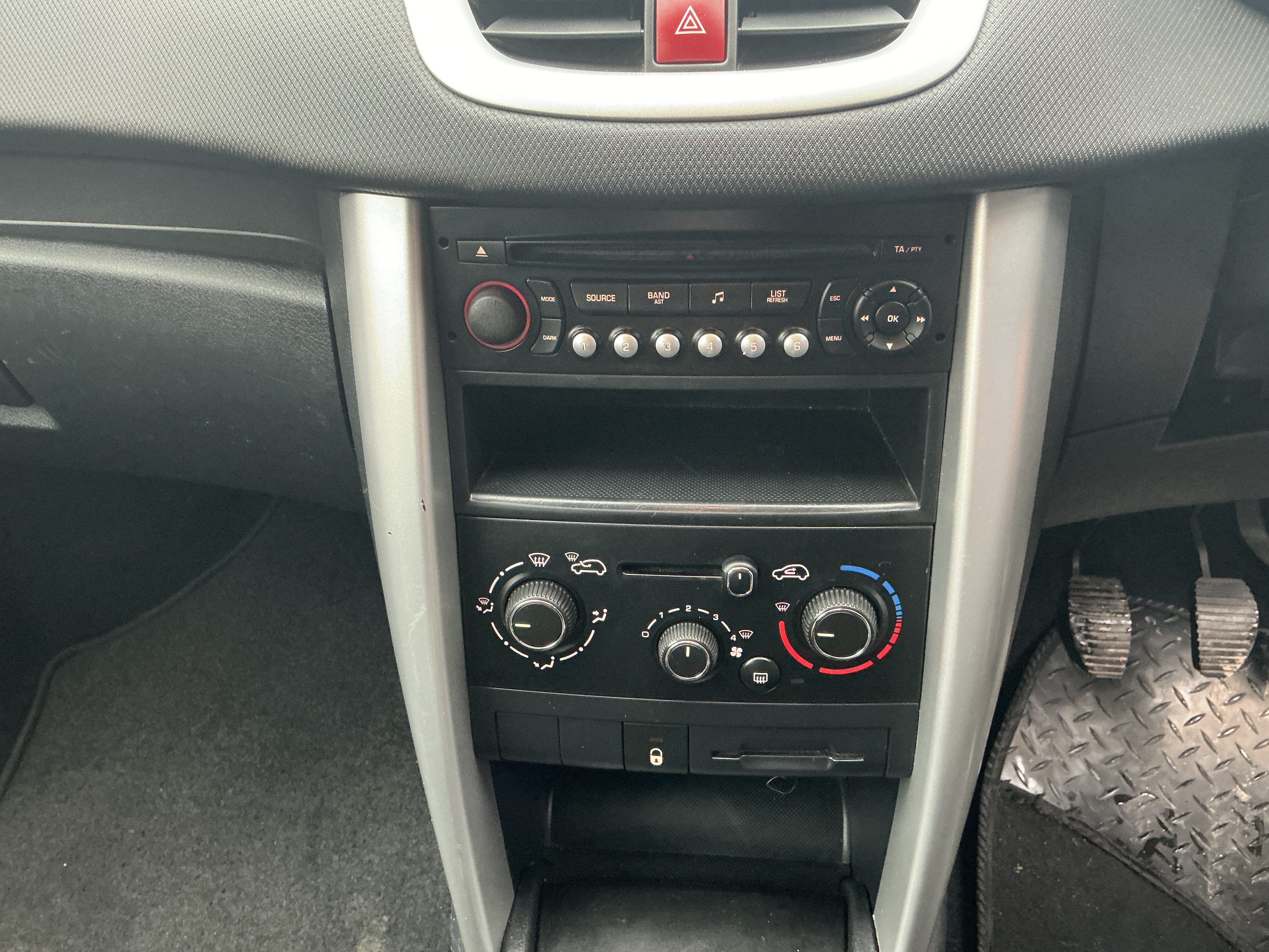 Keeping you entertained is the factory RD4 stereo system, featuring a radio and CD player. Sound is delivered through four speakers, and you can connect your own devices via the auxiliary input socket. The steering column-mounted audio remote control allows you to manage your music or calls without taking your hands off the wheel—a simple but effective touch. A handy 12V power socket is also on hand for keeping devices charged.